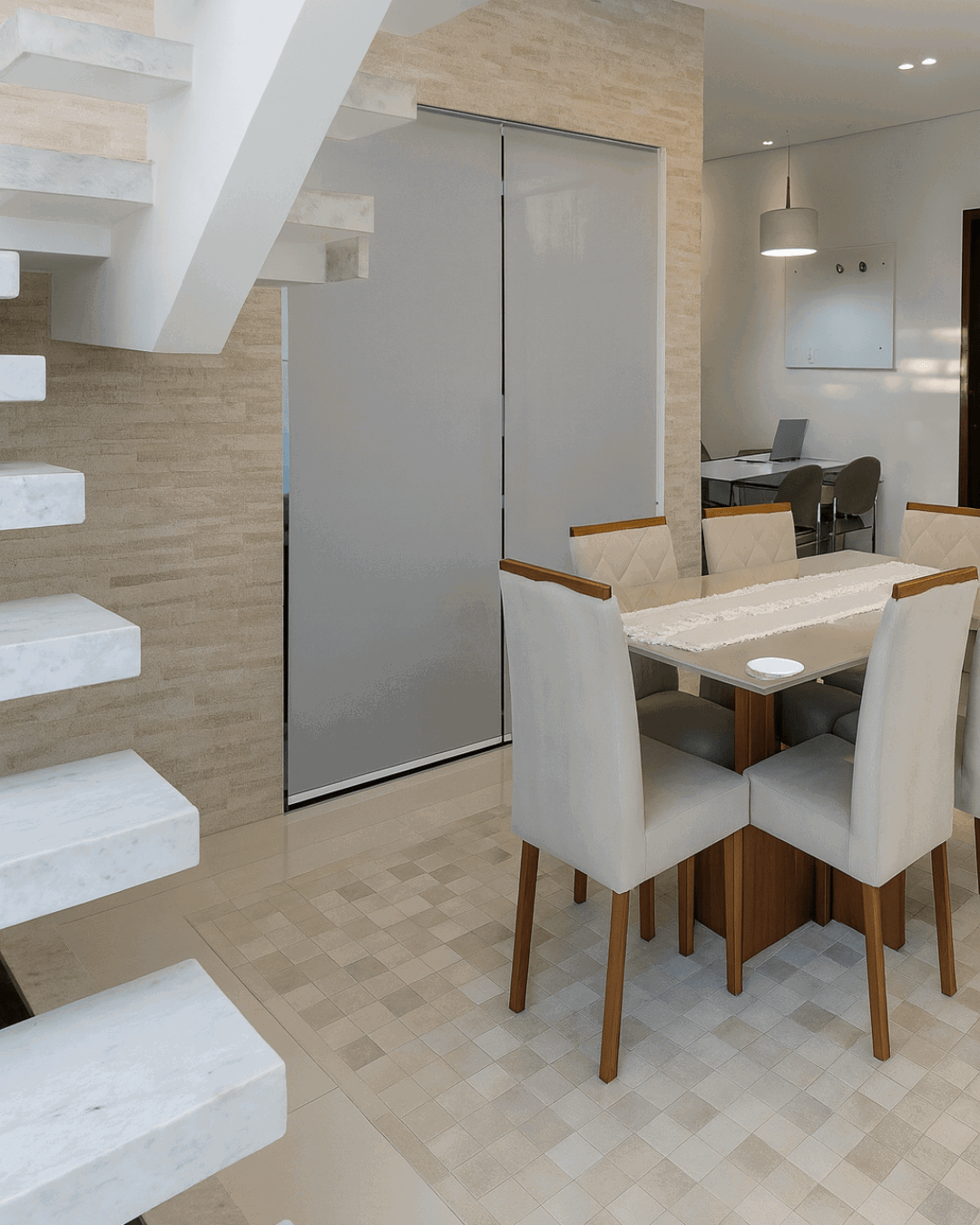 As faixas verticais criam uma sensação de altura e amplitude, trazendo sofisticação tanto para ambientes residenciais quanto comerciais.