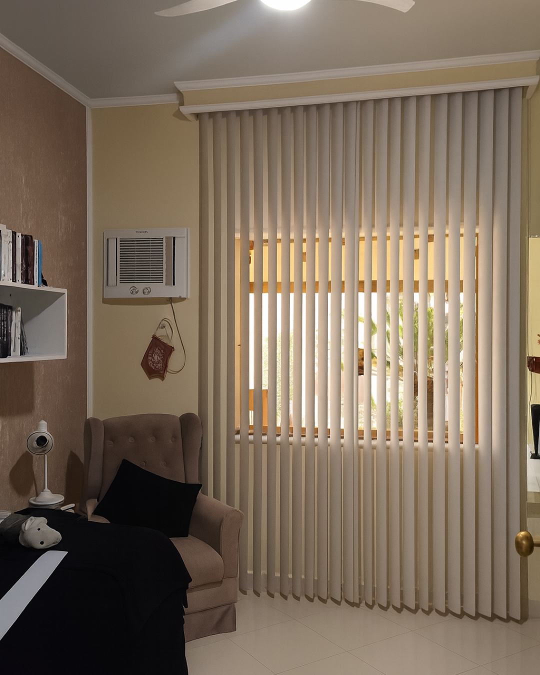 A Persiana Vertical é ideal para quem busca controle de luz, praticidade e um visual elegante, especialmente em portas-balcão, janelas grandes e ambientes amplos.